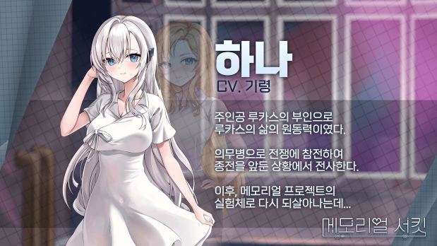 4년간의 대전쟁 이후, 어느 비밀스러운 프로젝트가 진행되는 연구소를 배경으로 펼쳐지는 로맨스릴러 비주얼노벨.