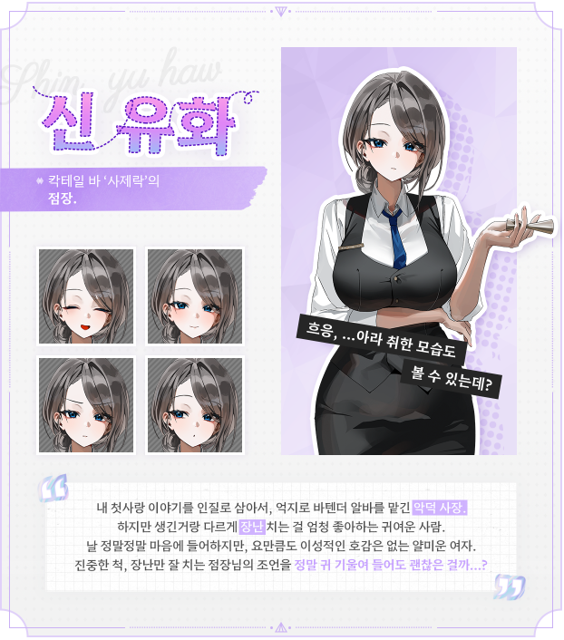 칵테일바 점주인 신유화 눈나도 너무 매력적인 캐릭터입니다.