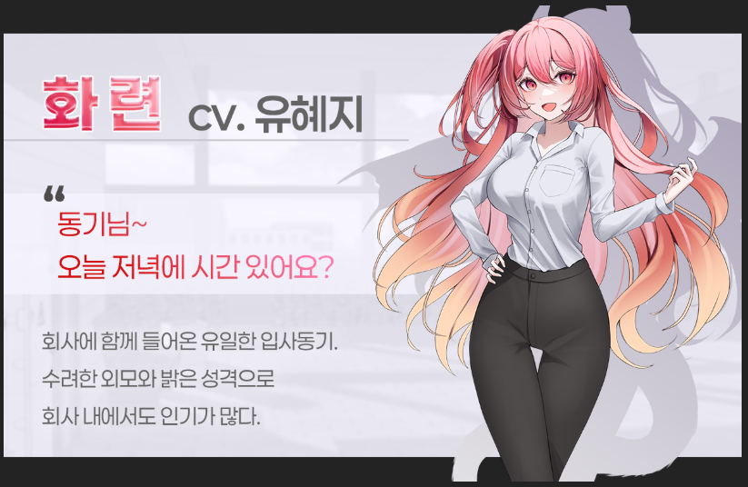 텀블벅 페이지에서 언급하듯 게임 전개중에 이들에 대해 과거이야기, 주인공의 숨겨진 이야기 같은건 전혀 나오지 않는다.